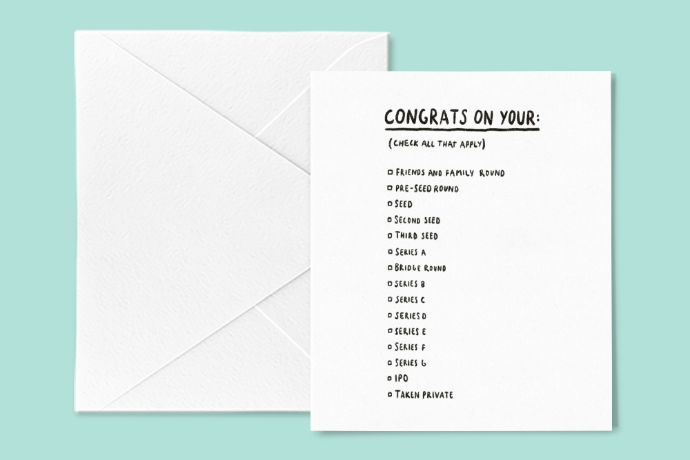 Congratulate a founder on a milestone, no matter how confusing the lingo.